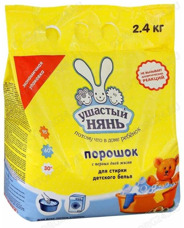 ОписаниеОдним из главных преимуществ детского стирального порошка УШАСТЫЙ НЯНЬ является то, что он гипоаллергенный. Порошок подходит для использования при стирке одежды малышей с первых дней жизни.УШАСТЫЙ НЯНЬ - идеальный стиральный порошок, который подходит как для машинной, так и для ручной стирки.Среди преимуществ стирального порошка УШАСТЫЙ НЯНЬ можно выделить следующие параметры:- стирает при температуре 30-95 С;- борется с загрязнениями на подгузниках, трусиках, шлепанцах;- подходит для стирки одежды из хлопка, льна, синтетических тканей, смешанных волокон, не вызывает налета и коррозии в стиральной машине-отбеливателе для детских вещей.Это лишь основные конкурентные преимущества детского стирального порошка УШАСТЫЙ НЯНЬ.Стиральный порошок устраняет неприятные запахи и придает белью приятный свежий аромат, который быстро исчезает с одежды. Предназначено для стирки детских изделий, в том числе новорожденных, из хлопчатобумажных, льняных, синтетических тканей, а также тканей из смешанных волокон (кроме изделий из