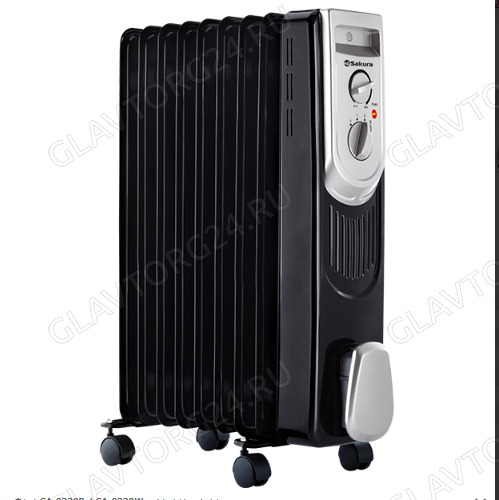 Масляный обогреватель Sakura SA-0339B 2000Вт 9 секций серебристо-черный