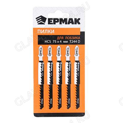 Пилки для эл.лобзика (HCS EU 75х4мм.) T-244D (дер., быст., фиг.рез.), 5шт. ЕРМАК