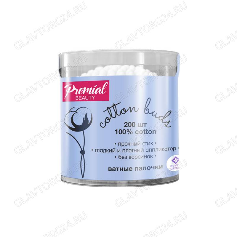 Ватные палочки банка 200шт PREMIAL цилиндр/24вывод