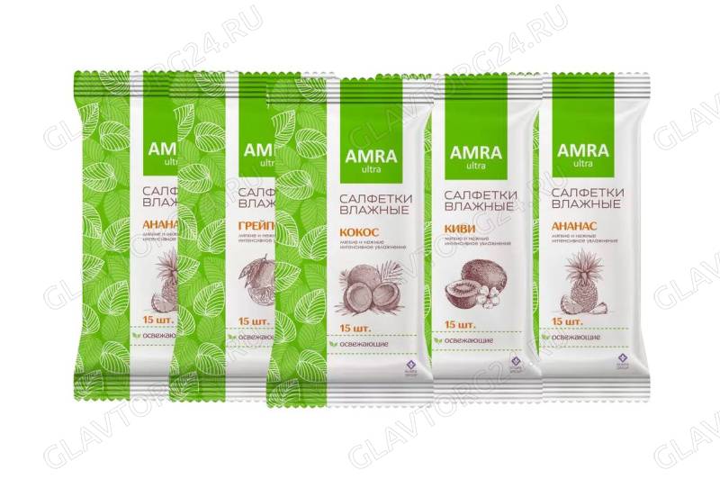 Салфетки влажные AMRA освежающие 15шт грейпфрут, ананас, киви, кокос/48шт