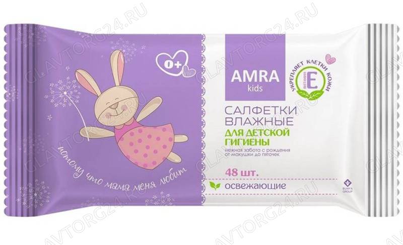 Салфетки влажные AMRA освежающие д/детской гигиены 48шт/12