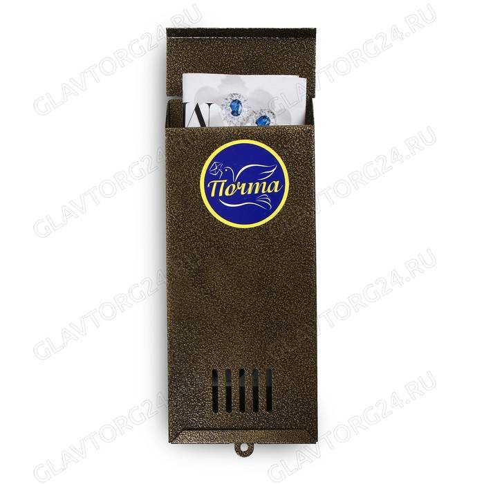 Ящик почтовый без замка (с петлёй), вертикальный 31х13х4 см, "Узкий", бронза 3324573