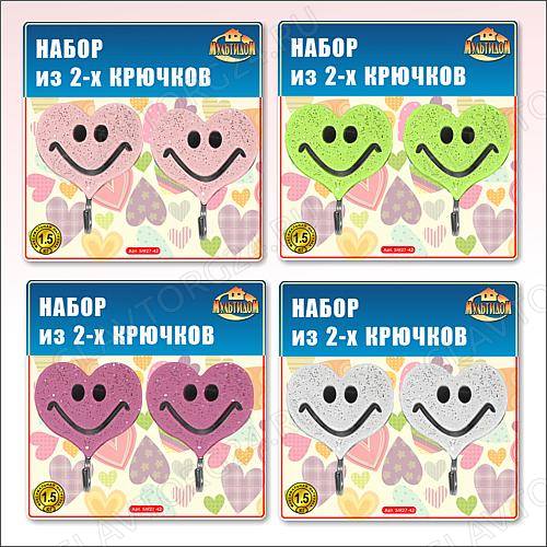 Набор крючков 2шт. самоклеящиеся Улыбка-Сердце 4цв арт. 27.42