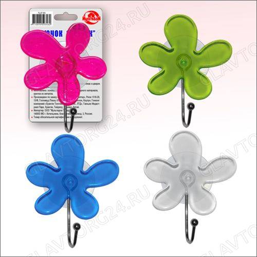 Крючок "Цветок" на присоске 4цв снято