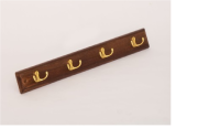 Вешалка для одежды, 4 двухрожковых крючка (золото) на деревянной основе /6