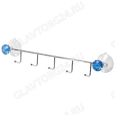 Планка с 5 крючками хром W2024E "Бриллиант, синий" (крепление: 2 присоски) арт. 311459