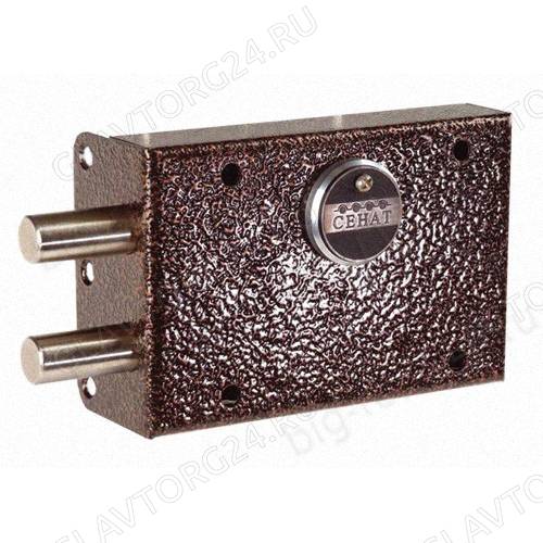 ОписаниеЗамок гараж. ЗНС-4-2 3 кл. 110Замок накладной 6-ти сувальдный предназначен для запирания деревянных и металлических дверей, применяемых в жилых и общественных зданиях и сооружениях. Открывается и закрывается с наружной и с внутренней стороны комплектным ключом. Засов изготовлен из 2-х стальных стержней круглого сечения. При запирании / отпирании замка сувальды раздвигаются в разные стороны. Это значительно усложняет вскрытие замка отмычкой. Шайба от высверливания внутри корпуса замка - это защита от взлома. Корпус имеет защитное порошковое полимерное покрытие. Класс замка -4. Количество секретов - 1 000 000 Выход засова - 40 мм Диаметр ригеля - 18 мм
