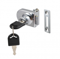 Замок мебельный на 1 стекло. Материал изготовления : цинковый сплав, сталь В комплекте : 2 ключа, ответная планка,крепеж