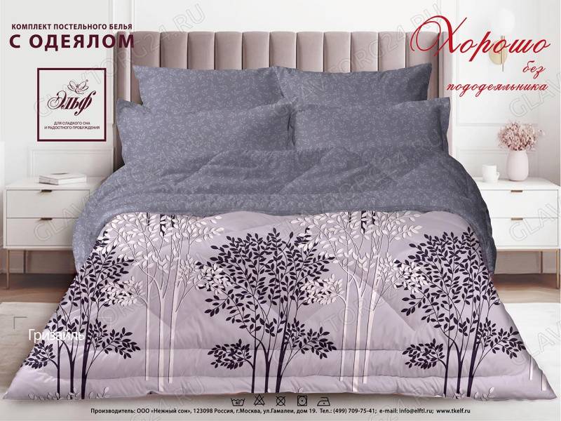 ------КПБ 2сп с одеялом Микросатин Гризайль Од172*205+Пр220*240+2Нав(70*70)