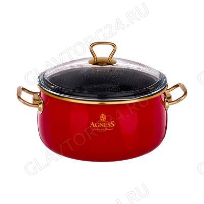 КАСТРЮЛЯ AGNESS ЭМАЛИР. СТ/КР. АНТИПРИГАР. "МРАМОРНЫМ" ПОКРЫТИЕМ, 24СМ 5,3Л/ арт. 950-213
