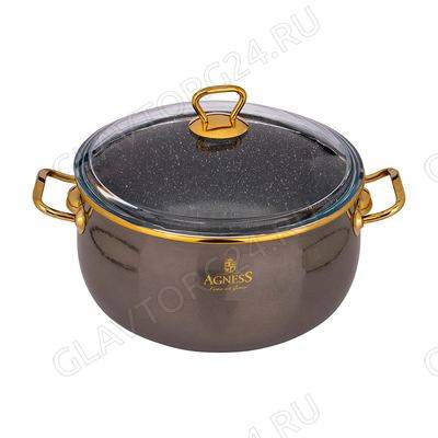 КАСТРЮЛЯ AGNESS ЭМАЛИР. СТ/КР. АНТИПРИГАР. "МРАМОРНЫМ" ПОКРЫТИЕМ, 20СМ 3,2Л/4 арт. 950-221