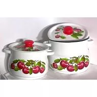 Набор эмалир. 10 Вишневый сад белый с декол. на крышке 2 пред. (кастрюли сфер. 4,0/5,5л) N10B55