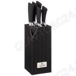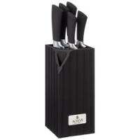 ● Состав набора: Нож поварской 20см, Нож для хлеба 20см, Нож для нарезки 20см, Нож универсальный 12,5см, Нож для чистки овощей и фруктов, 9см, Пластиковая подставка