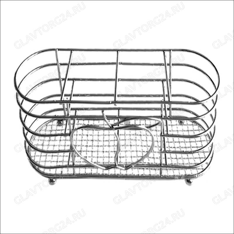 ОписаниеИспользуется для сушки и хранения столовых приборов, кухонных лопаток и инструментов. Изготовлена из хромированной проволоки.