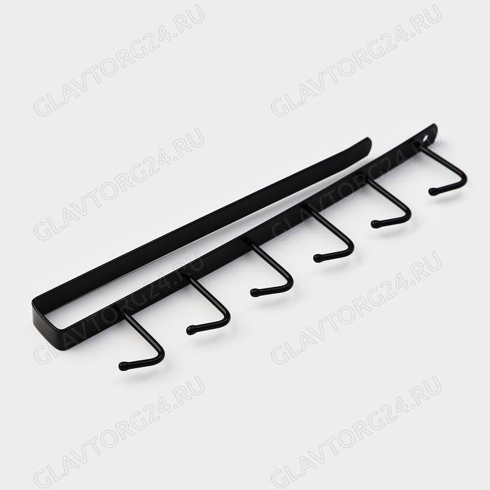 Держатель кухонный подвесной на 6 предметов, 1,5х26х7 см, цвет черный РАСПРОДАЖА(отходит покрытие)