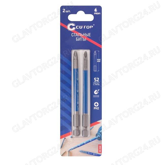 Набор стальных бит, 2 шт., CUTOP Profi, PH2, 100 мм (CUTOP)