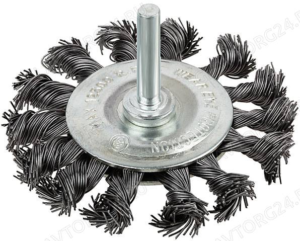 Корщетка, тип "колесо", со штифтом, стальная витая проволока 100 мм