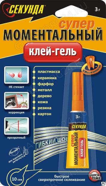 Моментальный клей-ГЕЛЬ СЕКУНДА 3 г., на ленте, 12шт. /288 кор