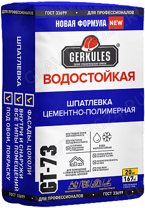 Шпатлевка Полимерная Водостойкая белая 20кг*72 (цементная) GT-73