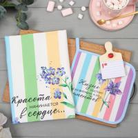 Набор кухонный 3пр саржа Этель Жизнь прекрасна (полотенце 40*73см+прихватка 19*19см+магнит 11*7см)