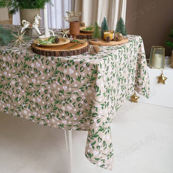 ОписаниеСкатерть новогодняя Доляна Frosty berries 149×110+/- 3 см, 100% хлопок, рогожка 164 г/м²