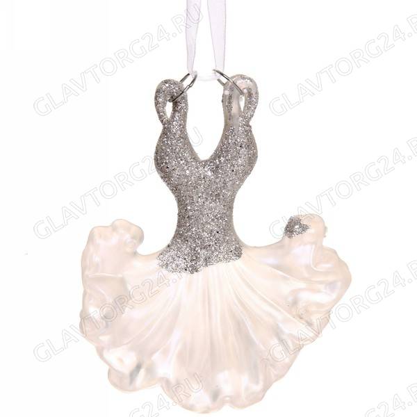 Подвеска "Платье нарядное" 10 см, белый/12шт
