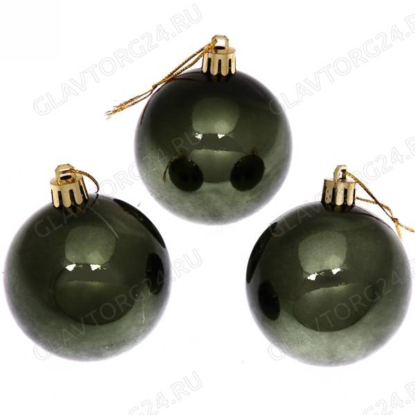 Новогодние шары 6 см (набор 3 шт) "Глянец", изумруд