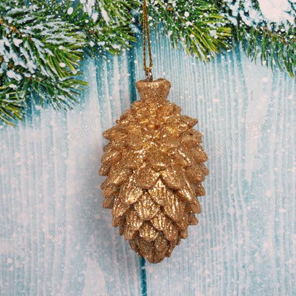 Украшение новогоднее подвесное "Новогодняя шишка" 6 см, шампань ПОСЛЕДНЯЯ ЦЕНА