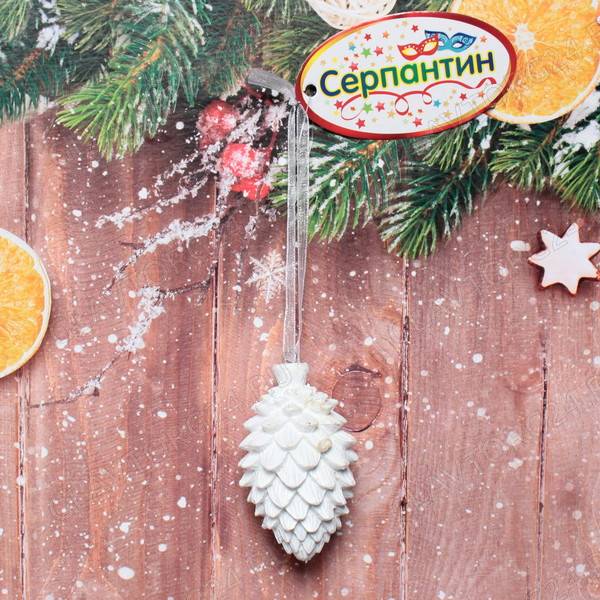 Украшение новогоднее подвесное "Новогодняя шишка" 6 см,белый ПОСЛЕДНЯЯ ЦЕНА
