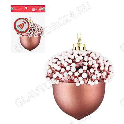 СНОУ БУМ Премиум Подвеска "Желудь" 6.5х7см, пластик, 1 шт, розовое золото/6шт