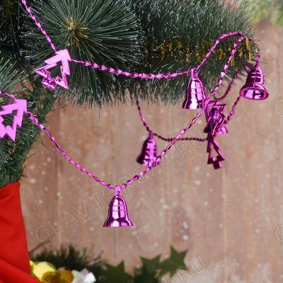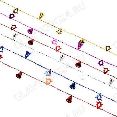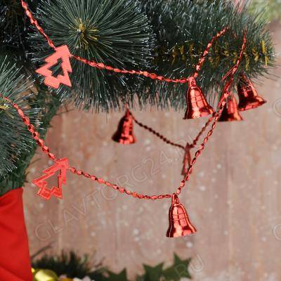 СНОУ БУМ Бусы декоративные, пластик, 200см, колокольчики и елочки, 6 цветов